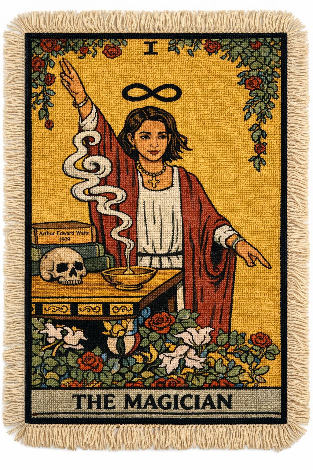 Nakışlı ve dokuma yüzeyler serginin daha içe dönük ve bedensel katmanını oluşturuyor; Emadi’nin her bir ilmeği “hemhal olma” hâlini zamana, sabra ve emeğe bağladığı bu işler, yukarı ile aşağı, iç ile dış, parça ile bütün arasındaki aynalılığı ilmek ilmek kuruyor. Dil burada yalnızca bir fikir değil; sanatçının elinde dokunulan, taşınan ve hafızaya işlenen bir yüzeye dönüşüyor.